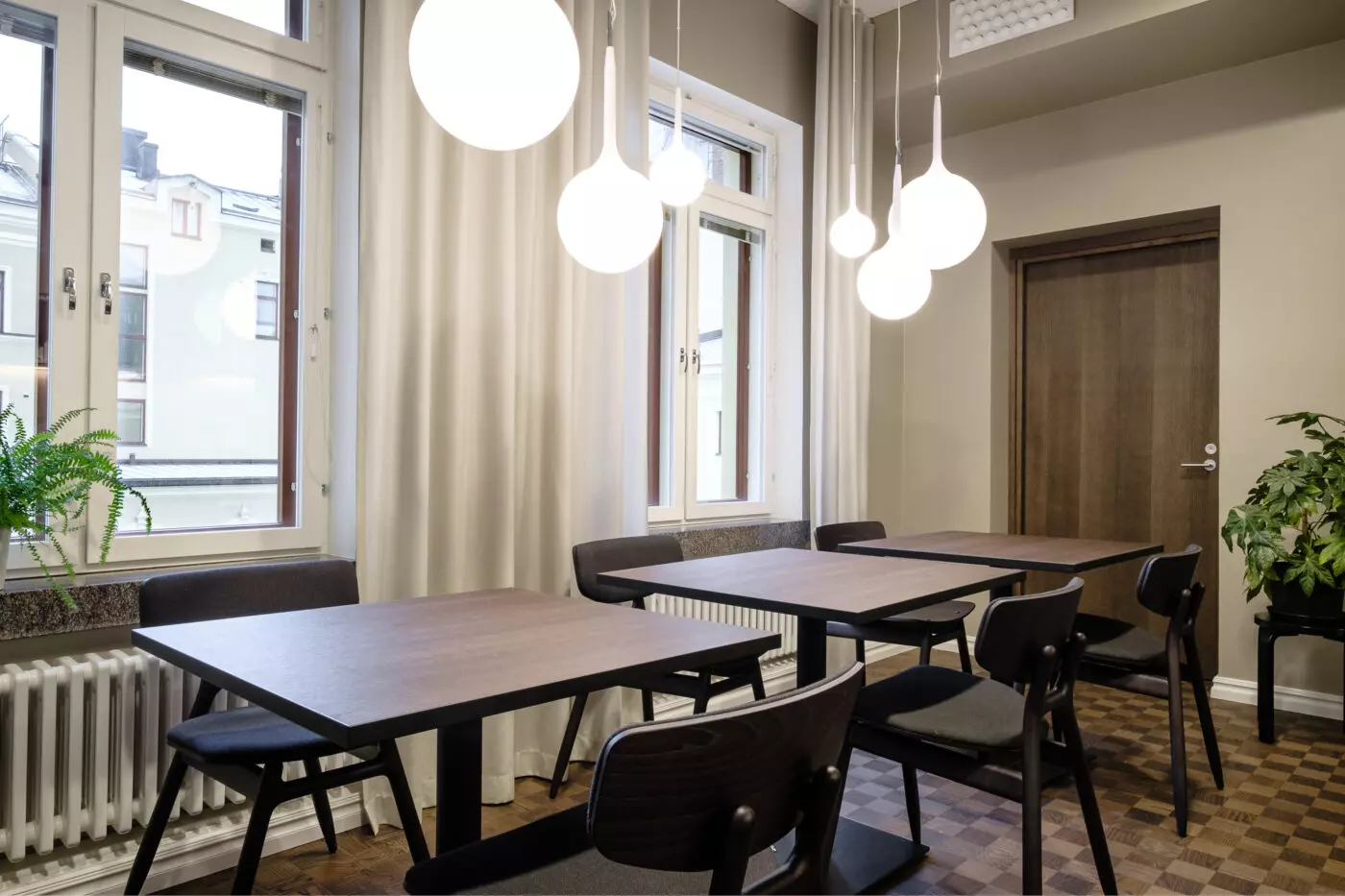 Loimme arvokkailla materiaali- ja värivalinnoilla tunnelmaa, jota korostimme muunneltavan ja tavallisesta toimistovalaistuksesta poikkeavan valaistuksen avulla. Harmoninen ja läpi tilojen jatkuva yhtenäinen ilme ja tunnelma on ollut kehuttu. Persoonallinen ja mieleenpainuva sisustus vastasi asiakkaan toiveisiin.
